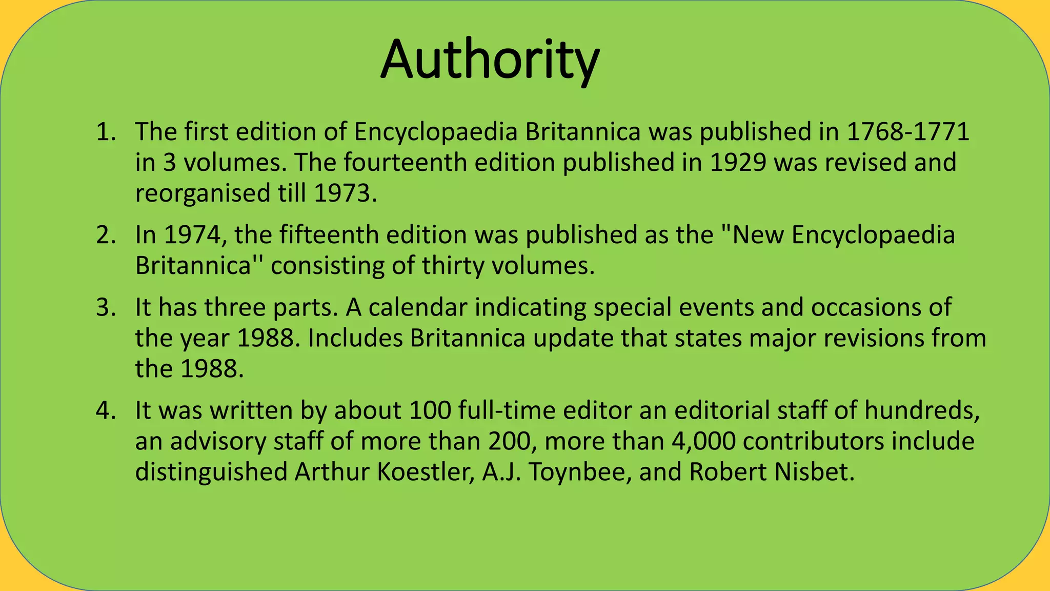 Evaluation of encyclopaedia of britannica | PPTX