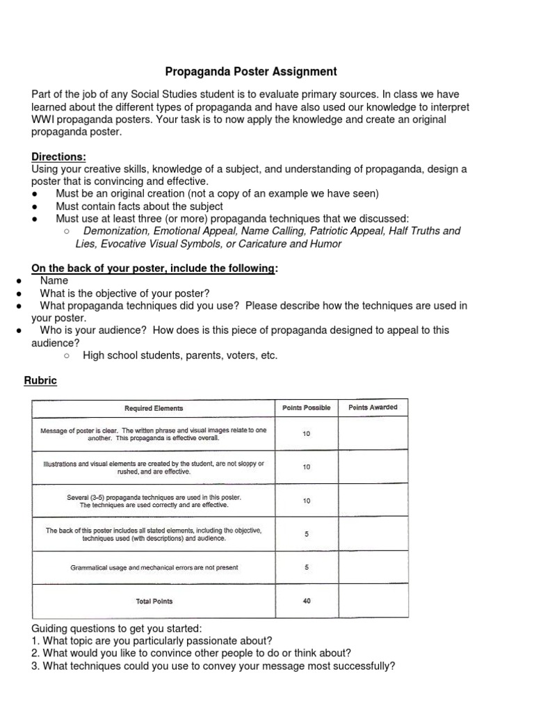 Propaganda Poster Assignment Sheet and Rubric.doc - World War II ...