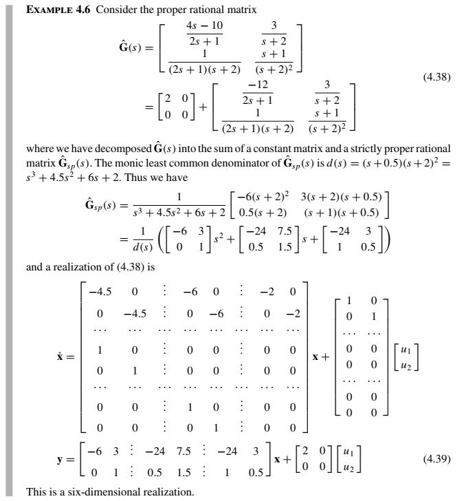Solved EXAMPLE 4.6 Consider the proper rational matrix | Chegg.com