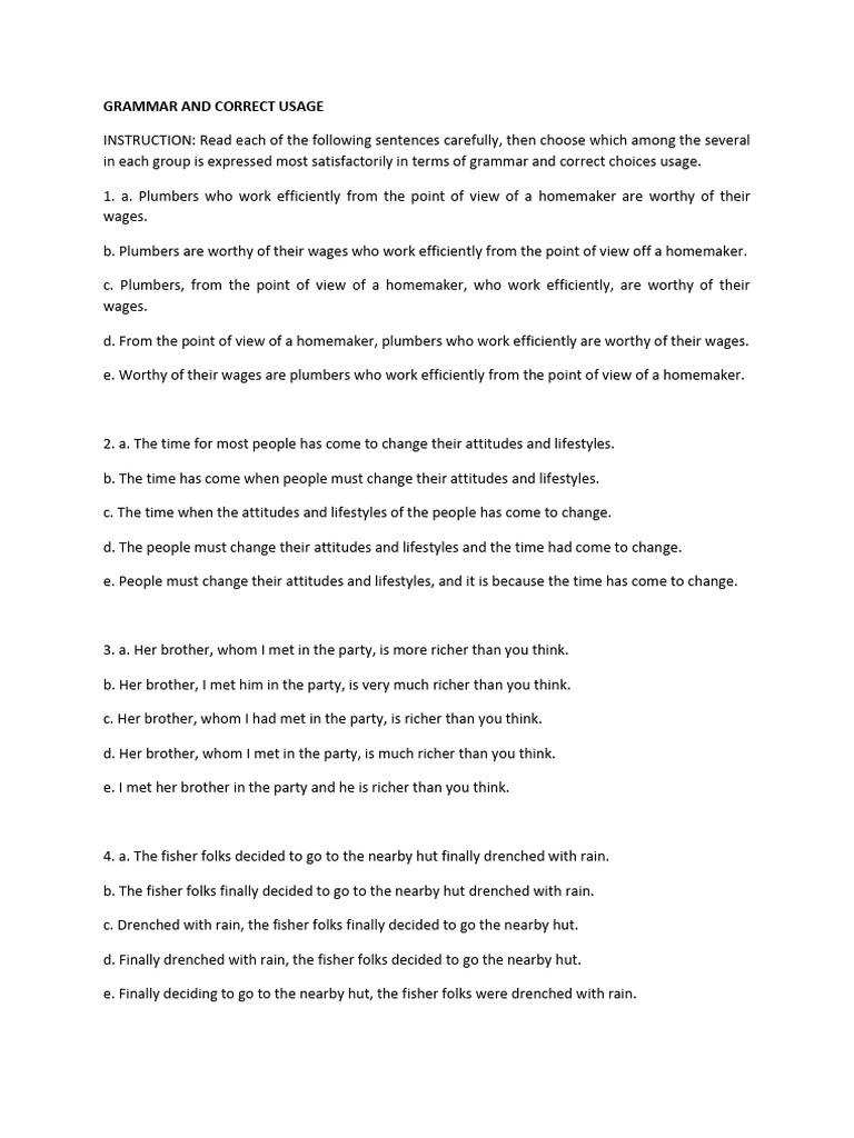 GRAMMAR AND CORRECT USAGE #1 – Board Exams PH