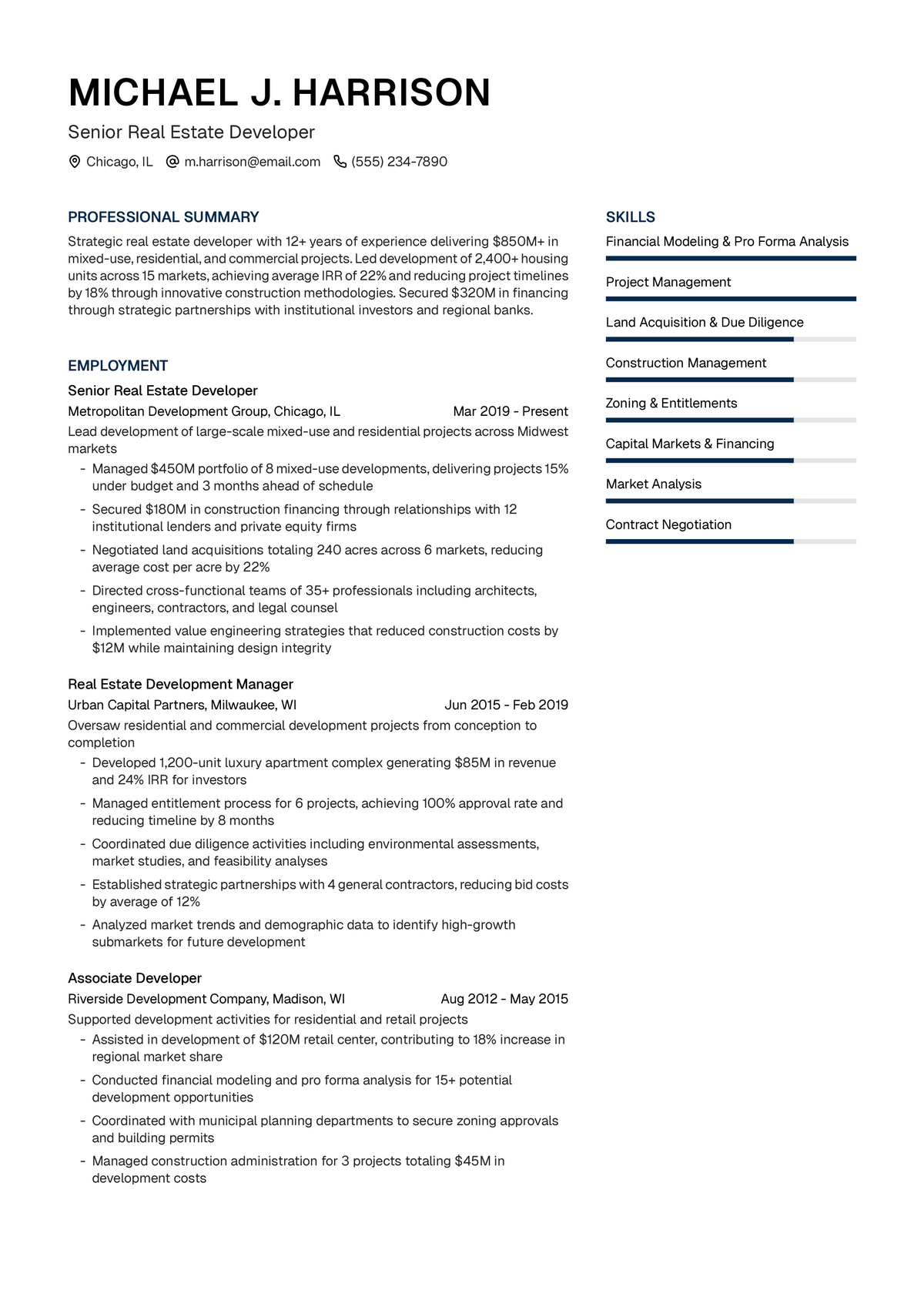 Real Estate Developer Resume Example: From Blueprint to Deal