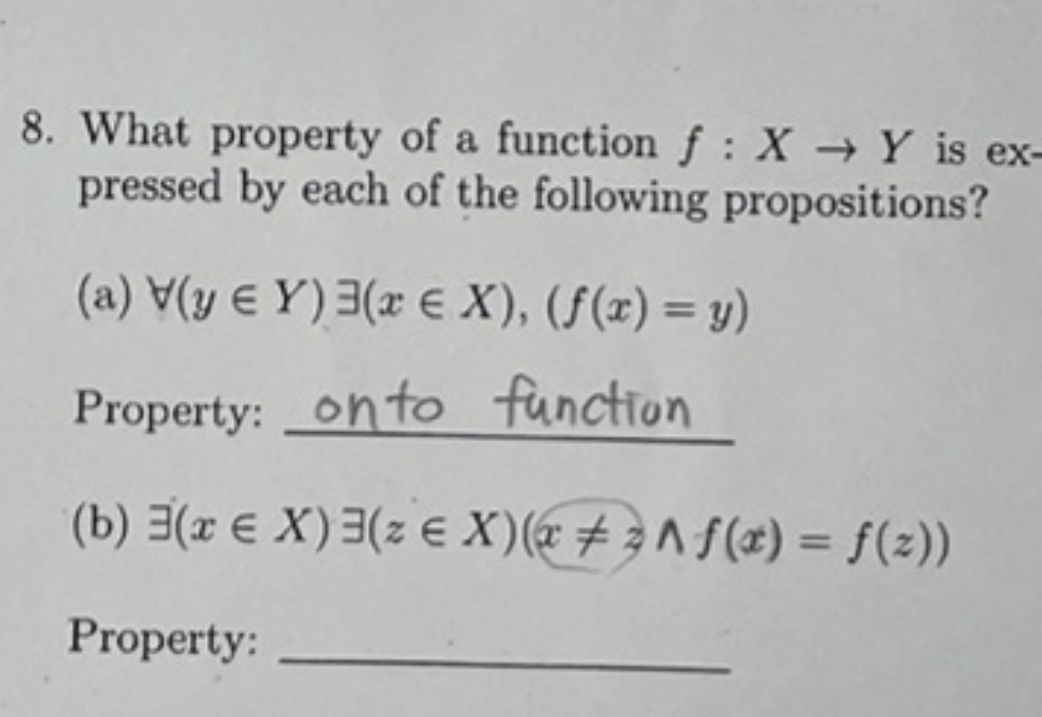 Solved 8. What property of a function f:X→Y is ex pressed by | Chegg.com