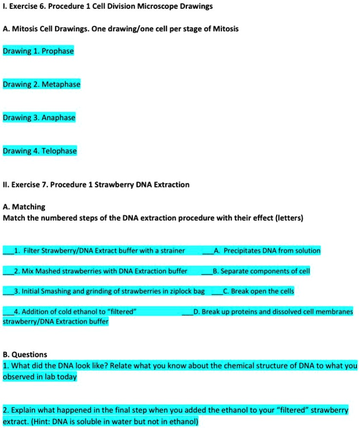 SOLVED: Texts: Fill in the worksheet I. Exercise 6. Procedure 1: Cell ...
