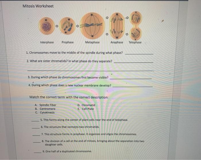 Solved Mitosis Worksheet Interphase Prophase Metaphase | Chegg.com