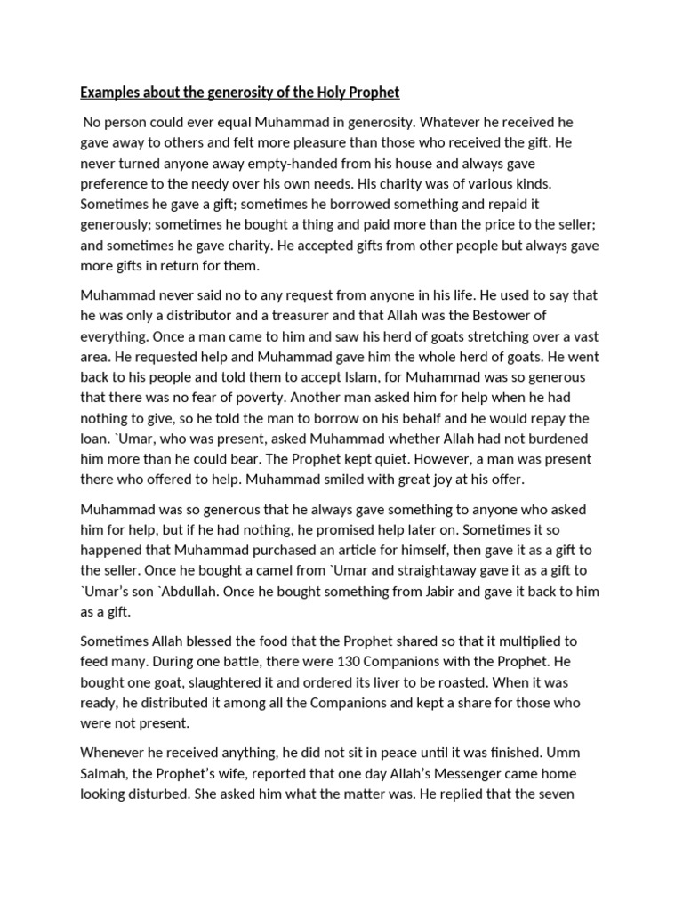 Examples About The Generosity of The Holy Prophet | PDF | Muhammad | Umar