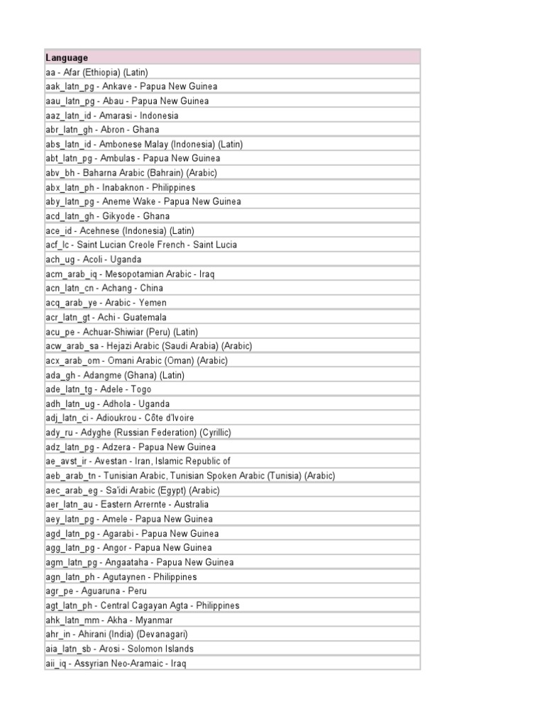 Language Codes | PDF