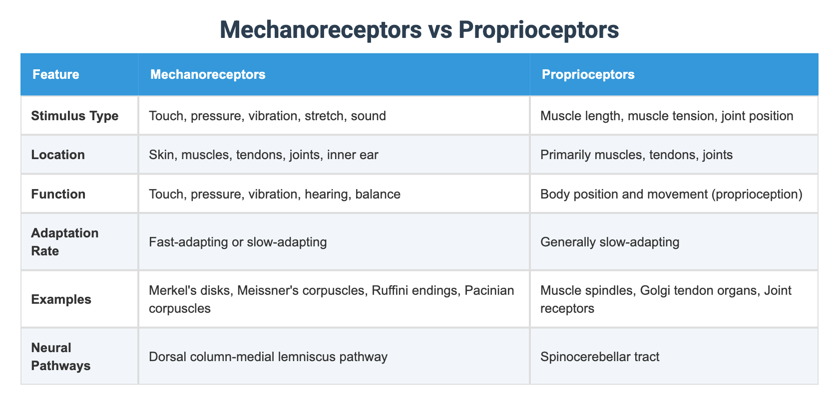 Mechanoreceptors vs Proprioceptors