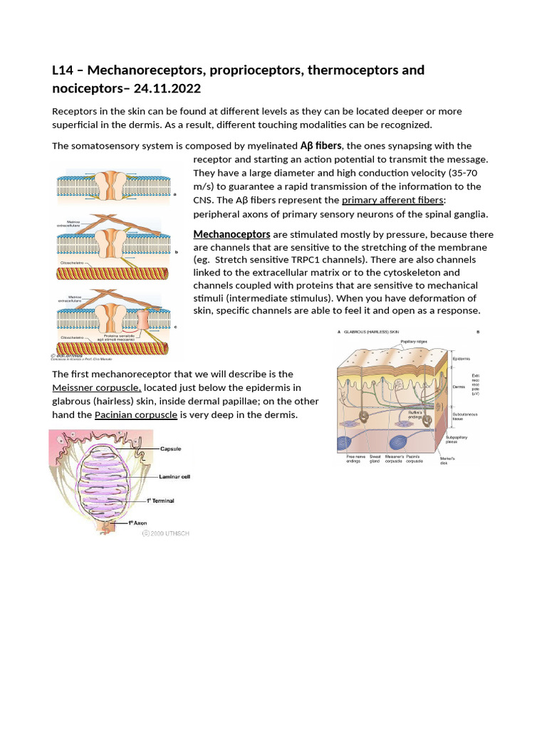 Mechanoreceptors and Proprioceptors Overview | PDF | Pain | Stimulus ...