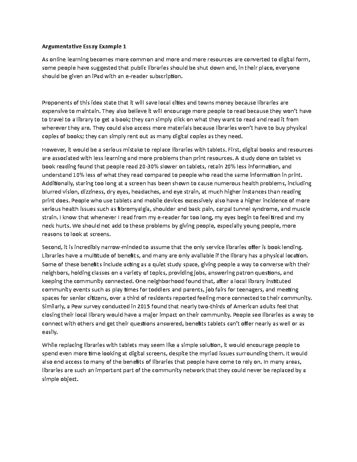 Argumentative Essay Example 1 - Proponents of this idea state that it ...