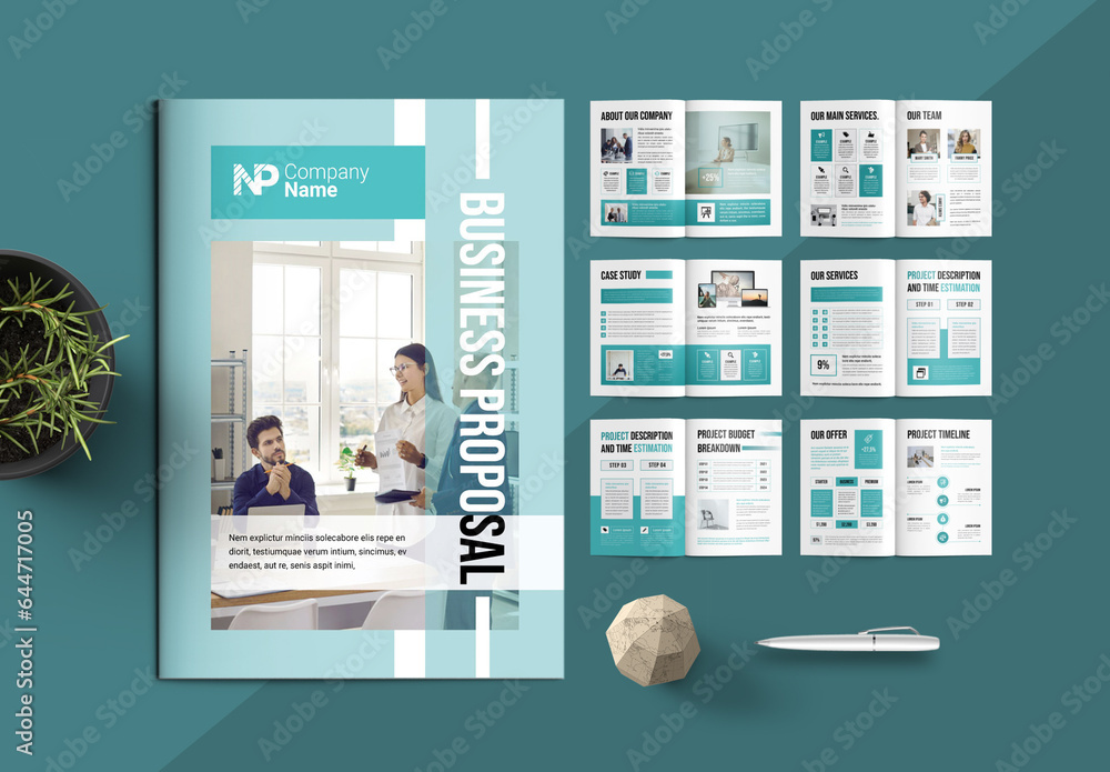 Business Proposal Layout with Teal and Green Accents Stock Template ...