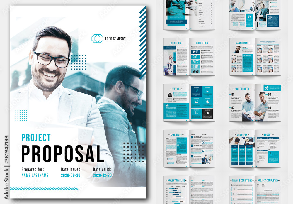 Business Proposal Layout with Blue Accents Stock Template | Adobe Stock