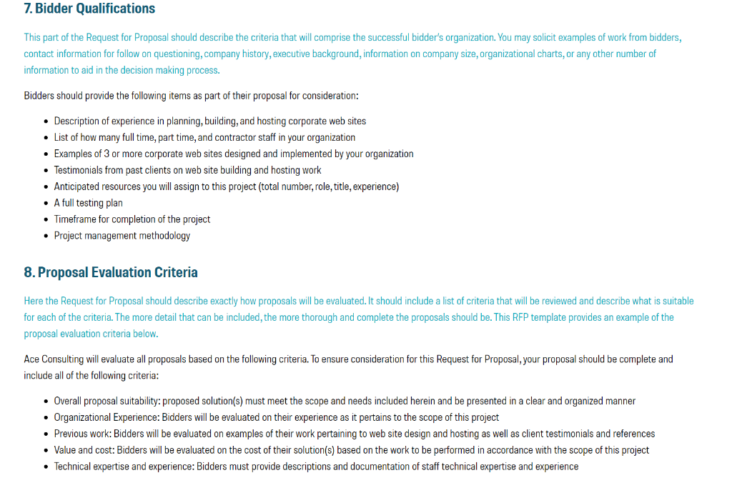 Solved 7. Bidder Qualifications This part of the Request for | Chegg.com