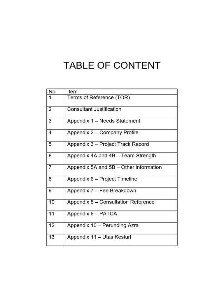Proposal Table of Contents Template in Google Docs, Word, Publisher ...