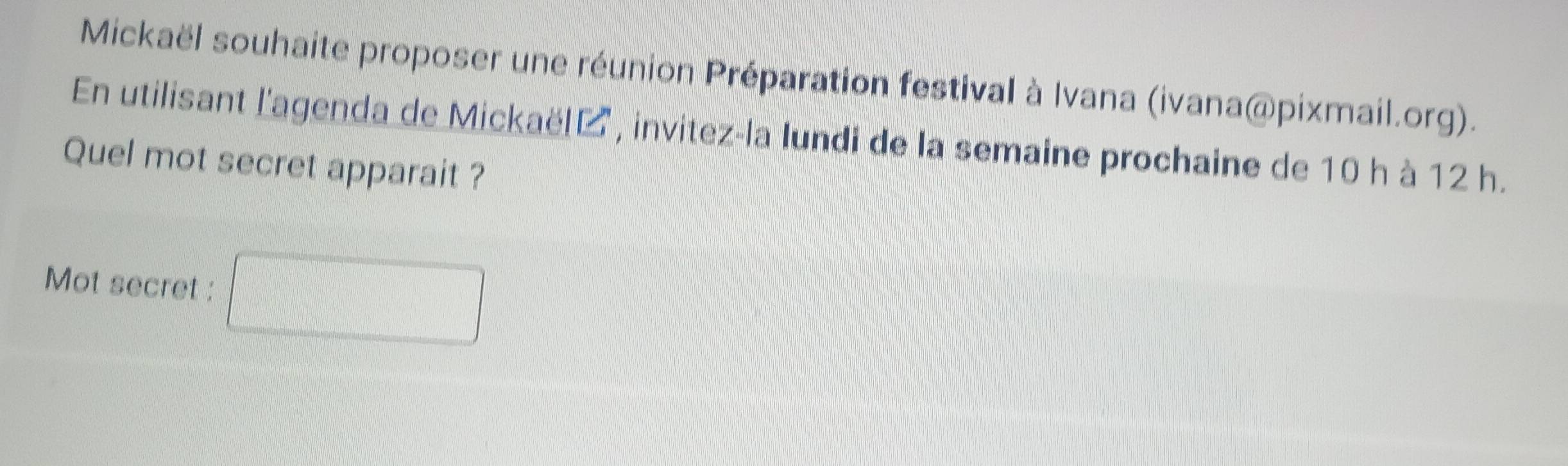 Résolu :Mickaël souhaite proposer une réunion Préparation festival à ...