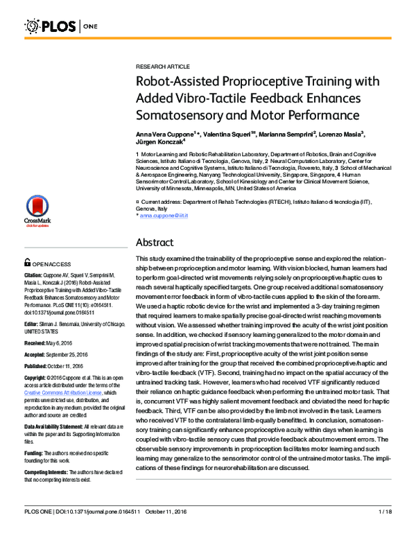 (PDF) Robot-Assisted Proprioceptive Training with Added Vibro-Tactile ...