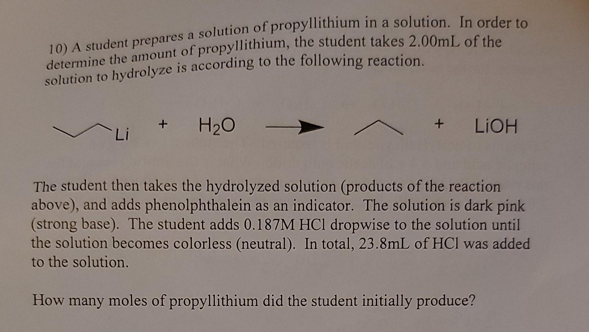 Solved 10) A student prepares a solution of propyllithium in | Chegg.com
