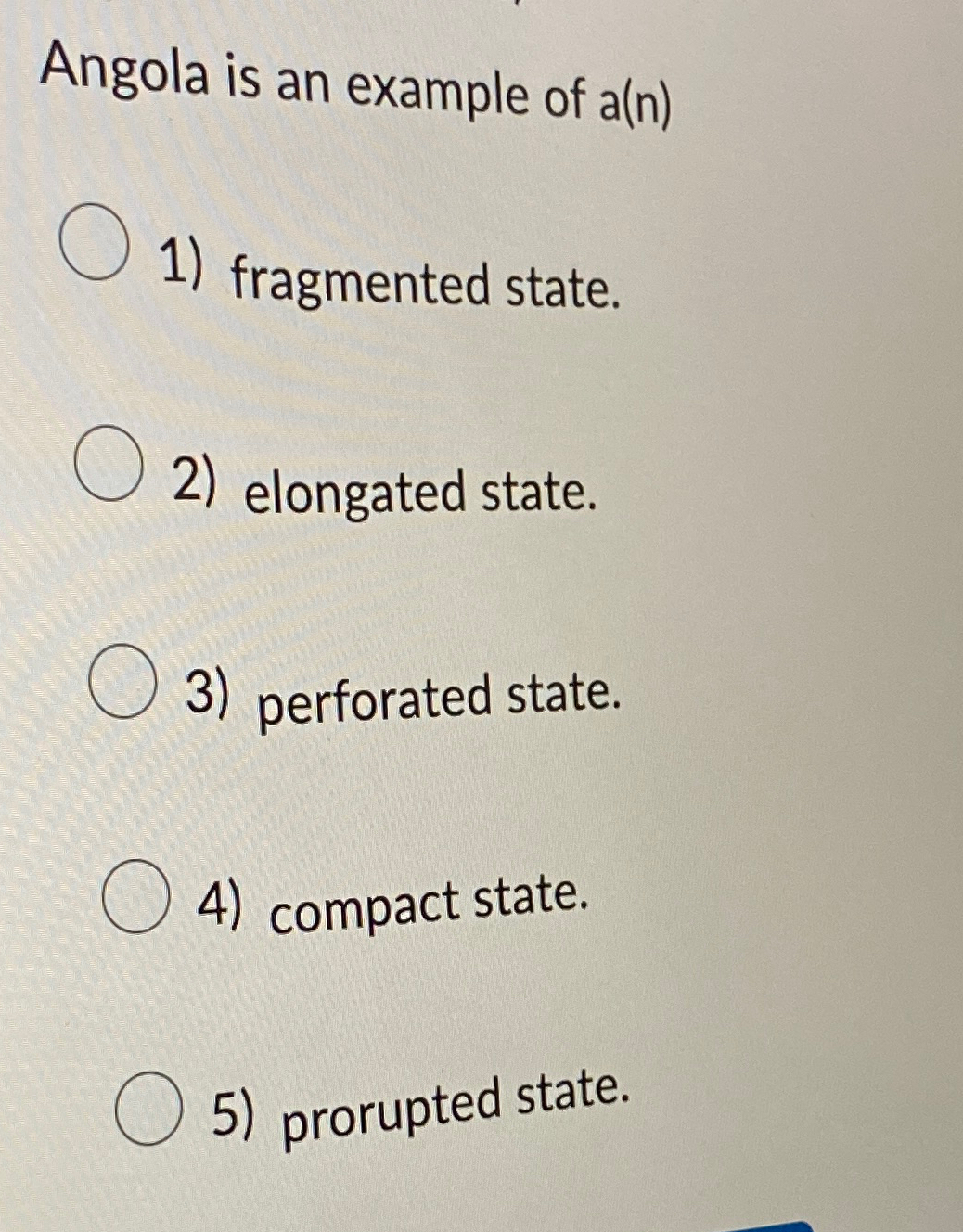 Solved Angola is an example of a(n)fragmented | Chegg.com