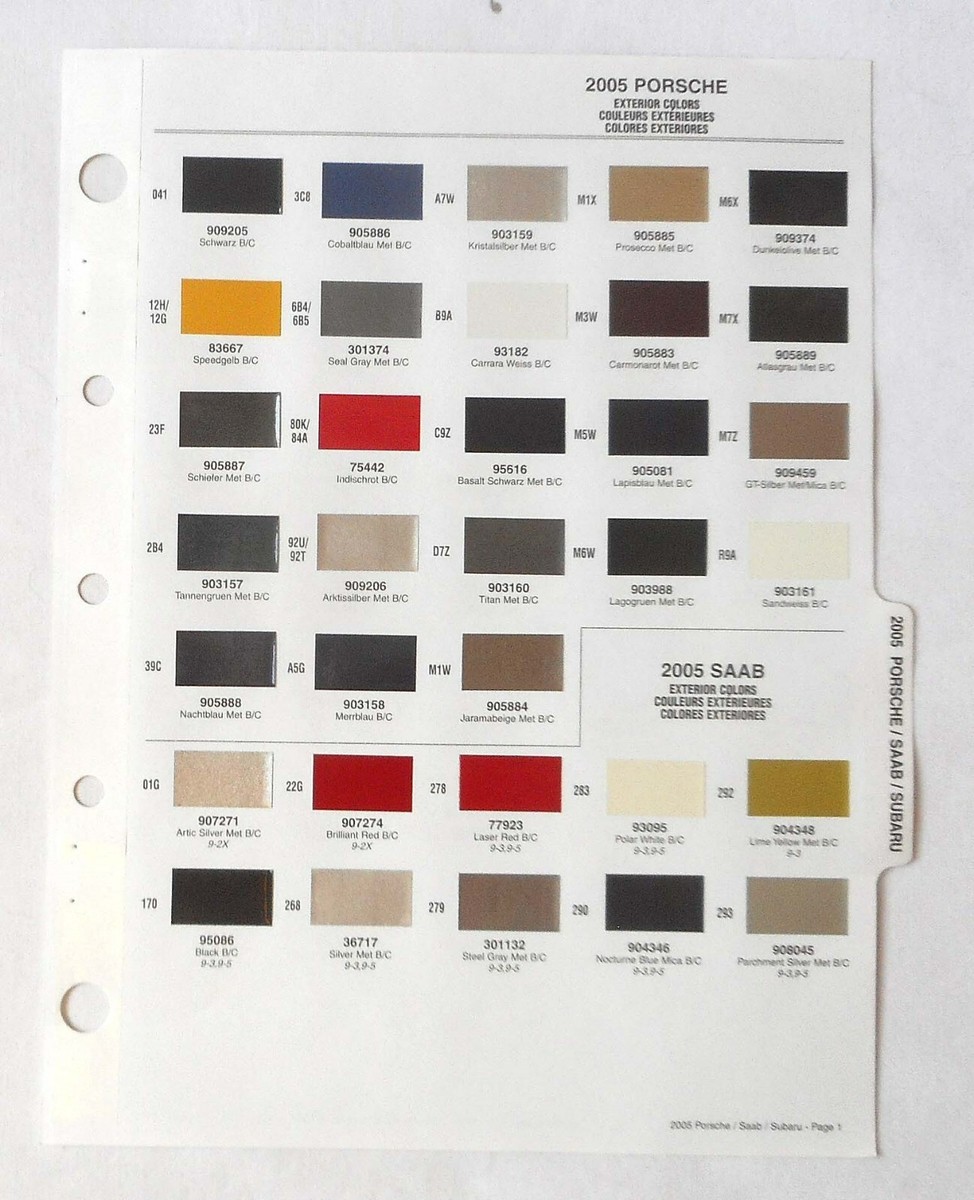 Porsche Paint Color Chart Porsche Paint Chart Color Reference