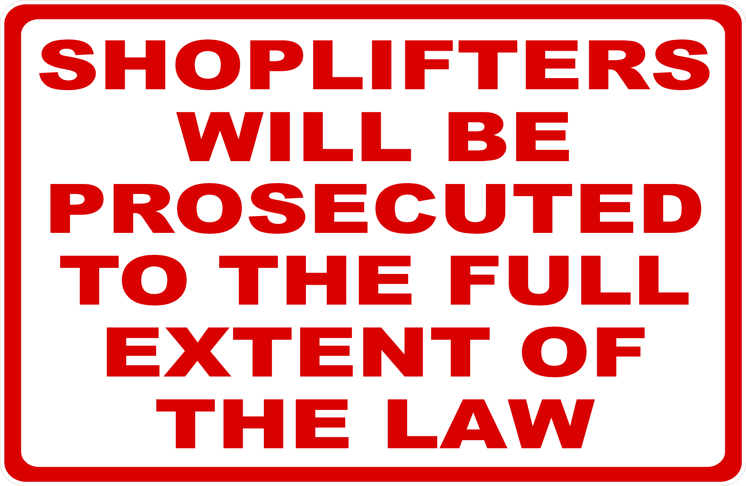 Shoplifters Prosecuted to Full Extent Law Sign – signs by salagraphics