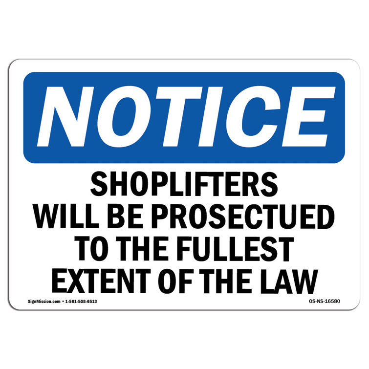 Shoplifting Will Be Prosecuted To The Full Extent Of The Law Landscape ...