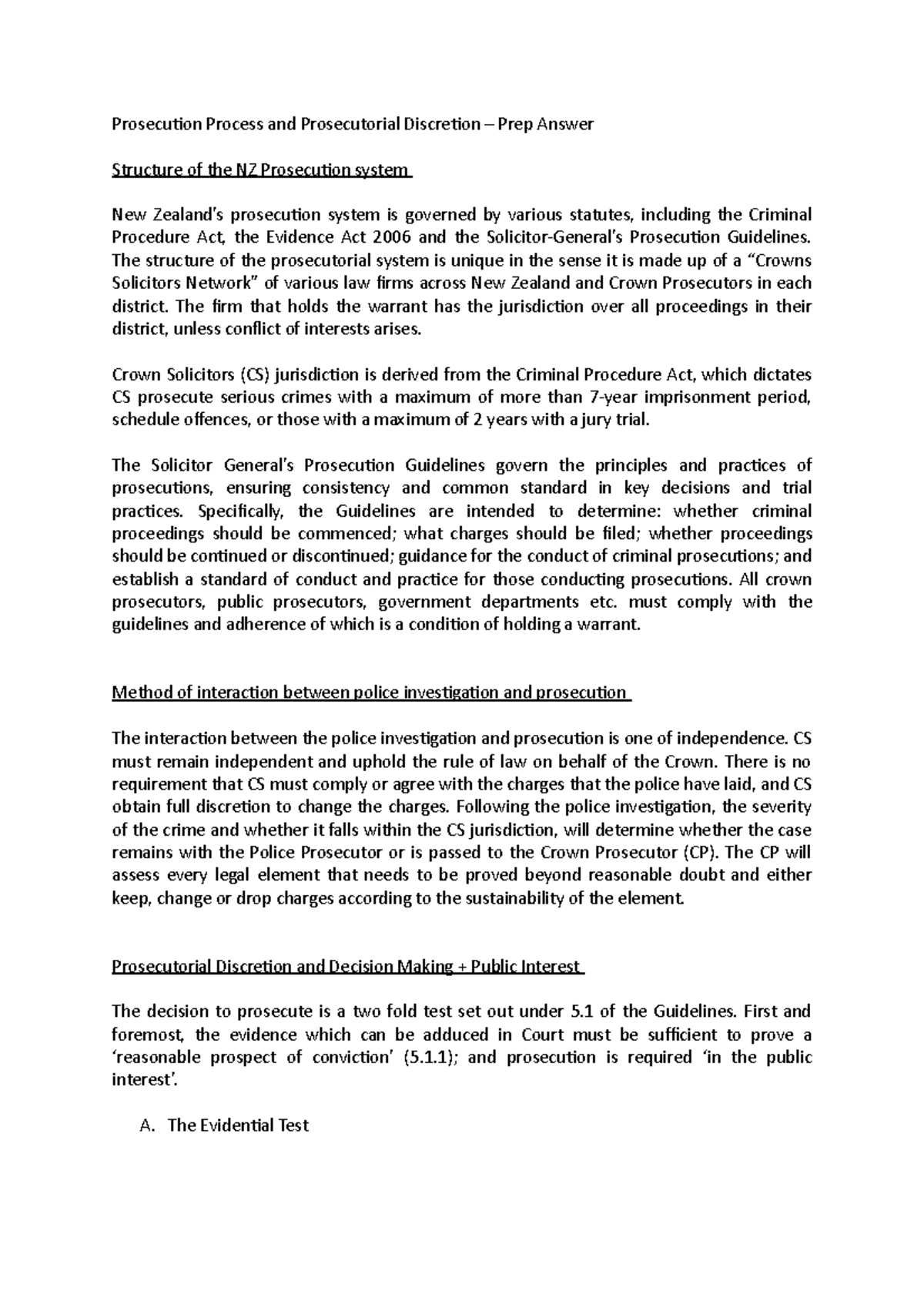 Prosecution - Prep Answer - Prosecution Process and Prosecutorial ...