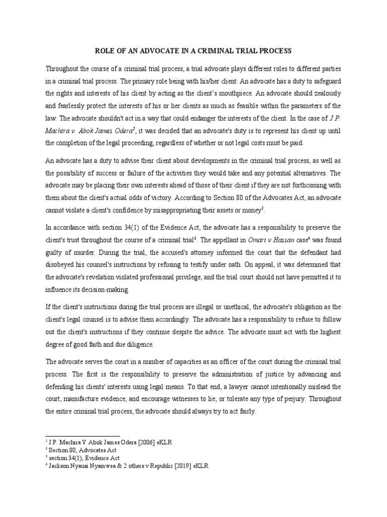 Role of An Advocate in A Criminal Trial Process | PDF | Prosecutor ...