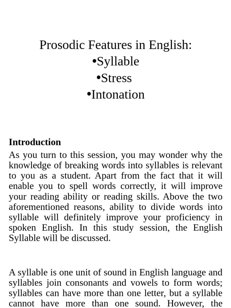 Prosodic Features in English | PDF | Syllable | Stress (Linguistics)