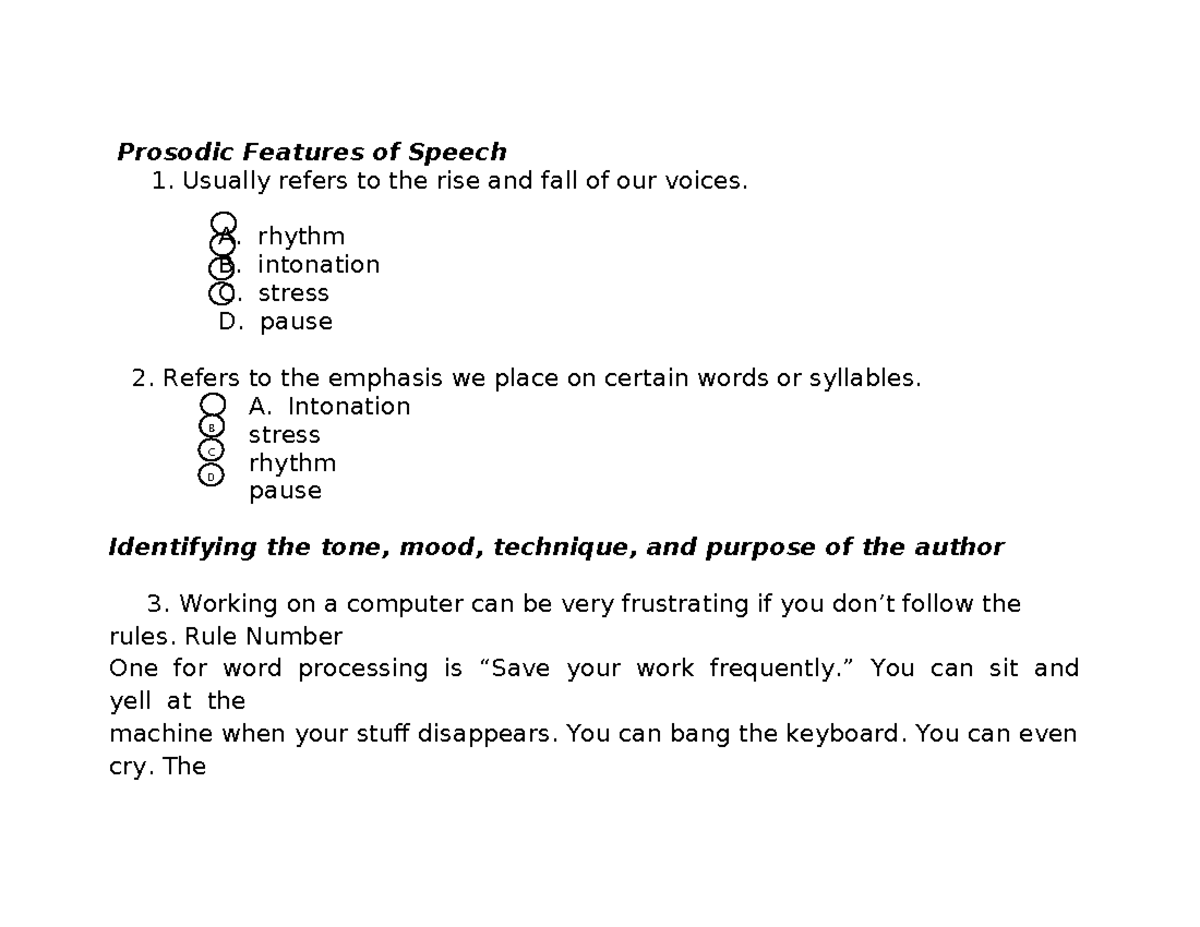 Grade 9 ENG - Understanding Prosodic Features in Speech and Texts - Studocu