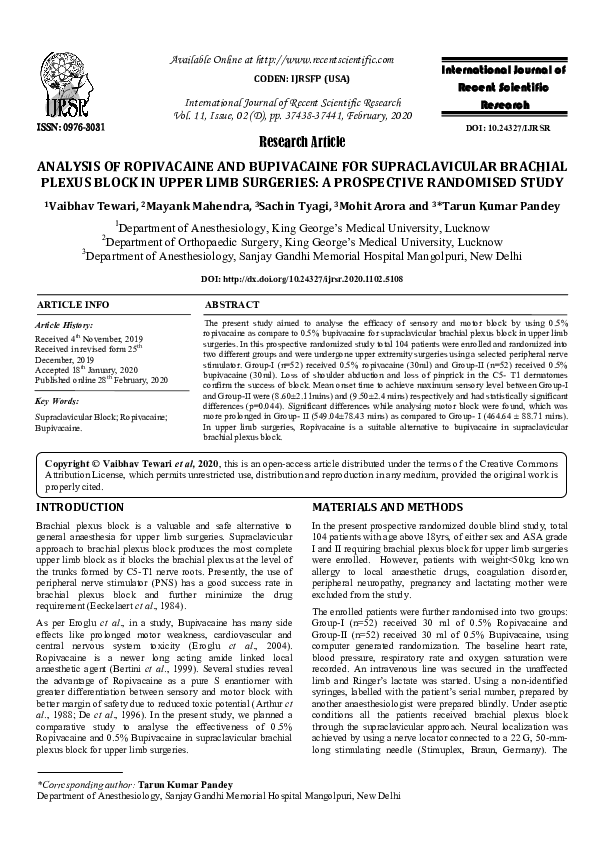 (PDF) Analysis of Ropivacaine and Bupivacaine for Supraclavicular ...