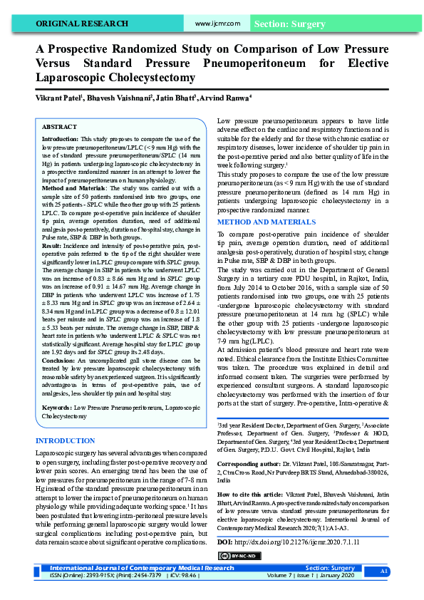 (PDF) A Prospective Randomized Study on Comparison of Low Pressure ...