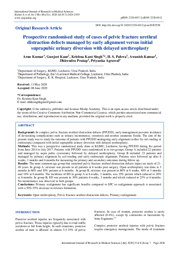 (PDF) Prospective randomised study of cases of pelvic fracture urethral ...