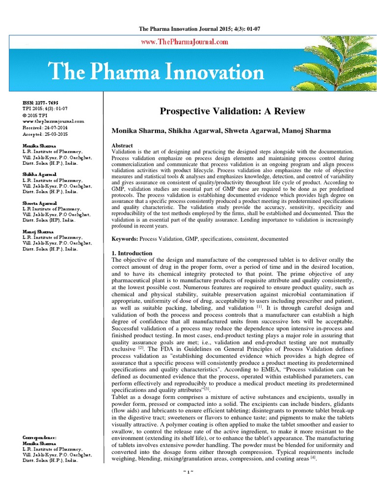 Prospective Validation A Review PDF | PDF | Tablet (Pharmacy ...
