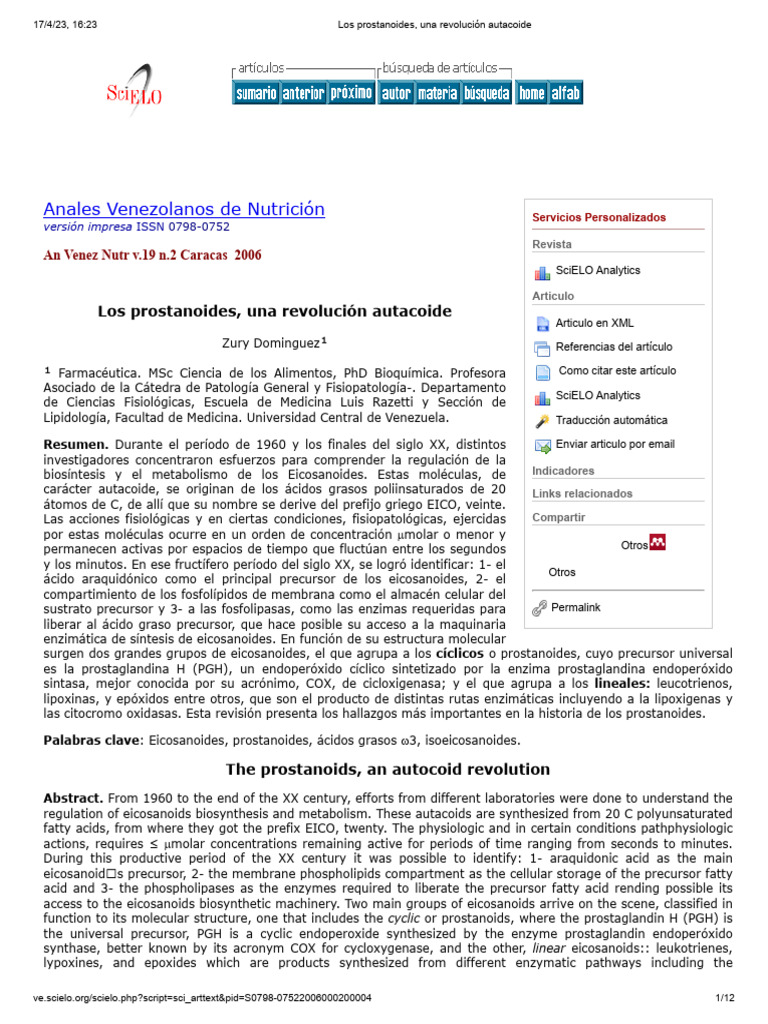 Los Prostanoides, Una Revolución Autacoide | PDF | Bioquímica | Química