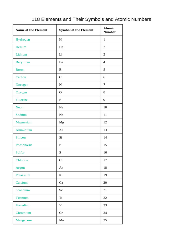 118 Elements and Their Symbols and Atomic Numbers | PDF | Chemical ...