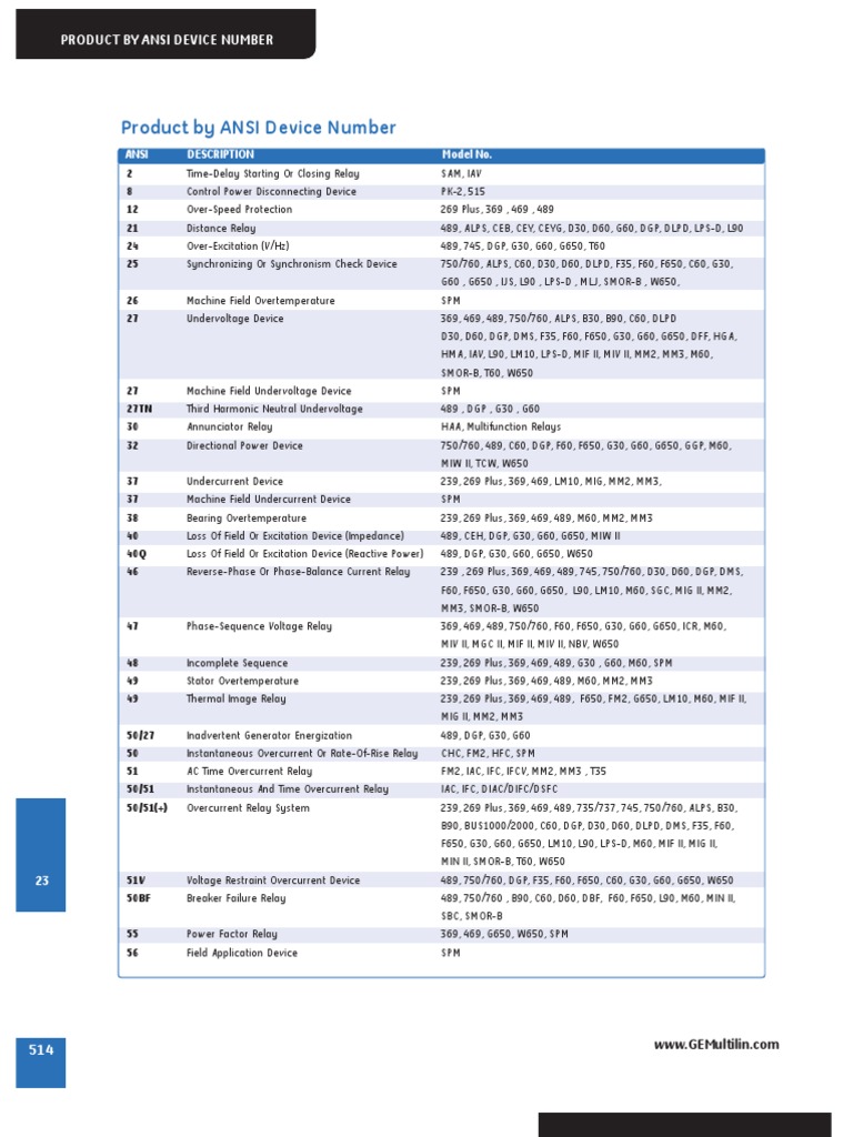 Protection Relay – ANSI Standards: Ansi Standard Device Numbers protect ...