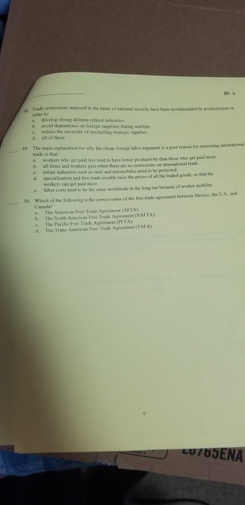 Solved ID: A Trade restrictions imposed in the name of | Chegg.com