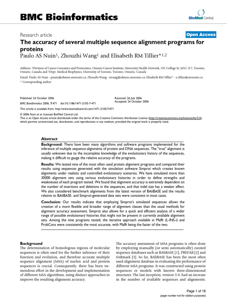 The Accuracy of Several Multiple Sequence Alignment Programs For ...