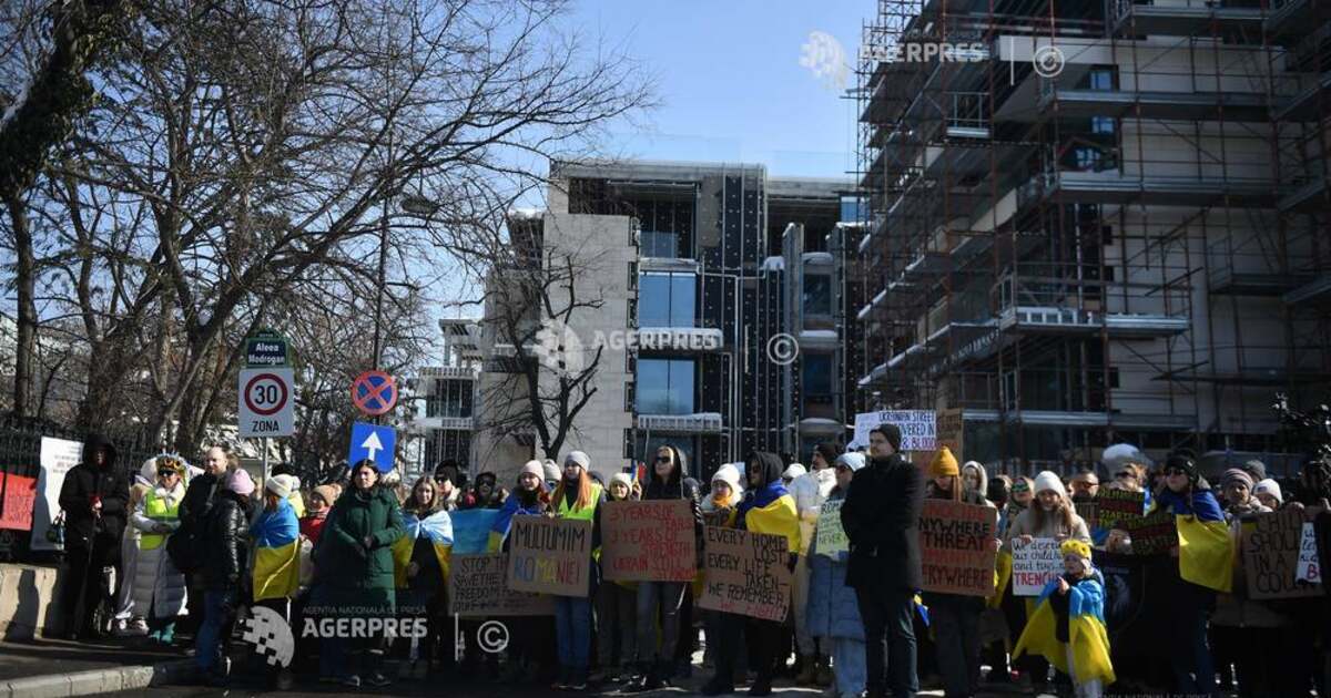 Protest al refugiaţilor ucraineni la Bucureşti, pentru marcarea a trei ...