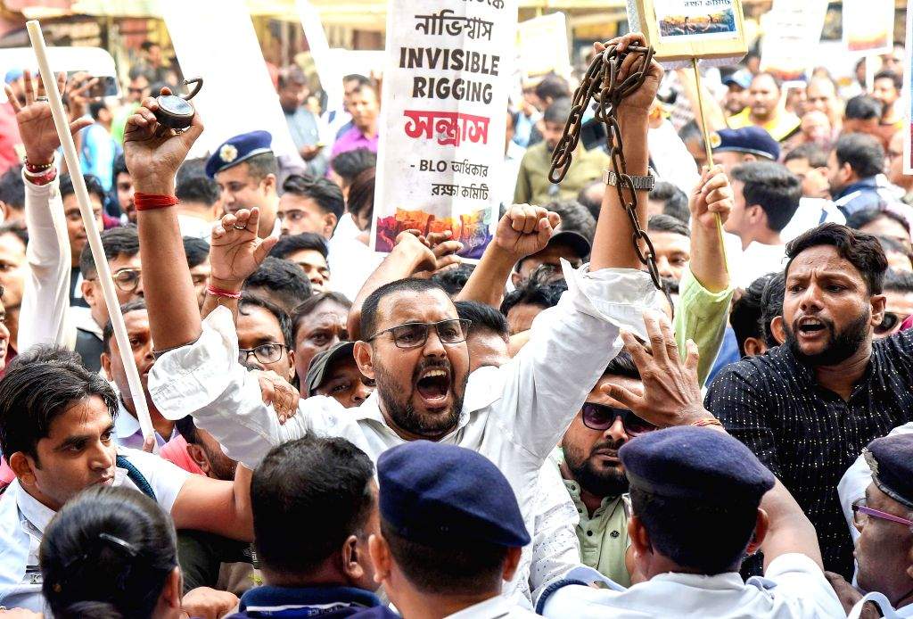 BLOs march in Kolkata protesting SIR work pressure