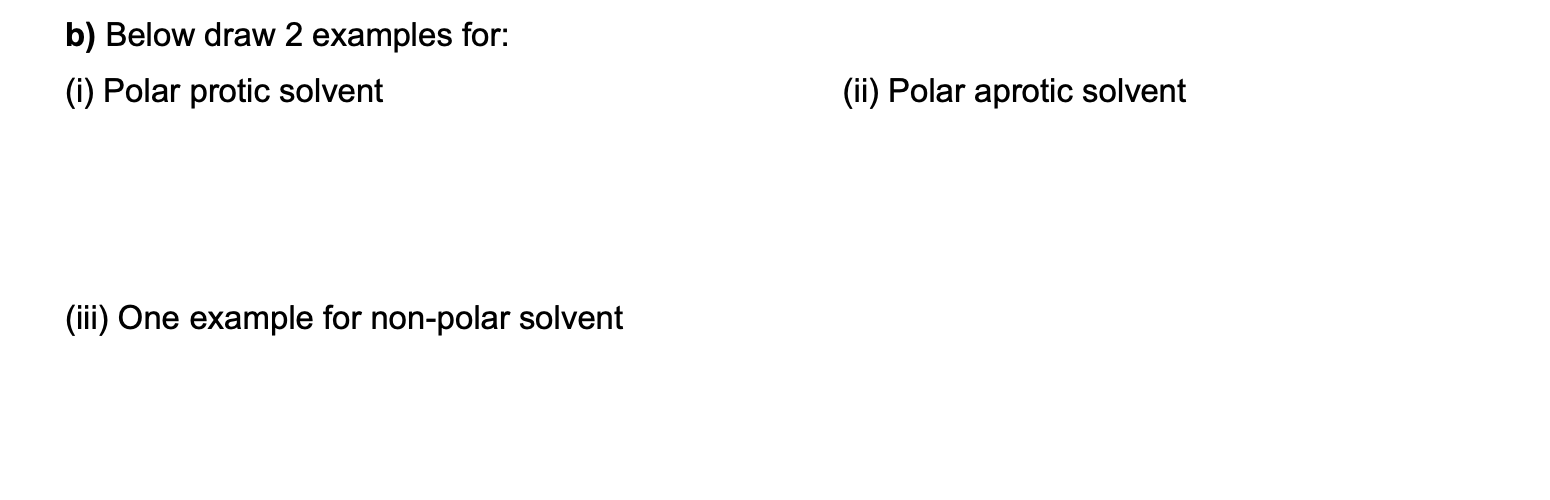Solved b) Below draw 2 examples for: (i) Polar protic | Chegg.com