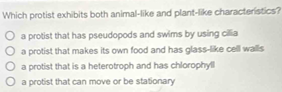 Solved: Which protist exhibits both animal-like and plant-like ...