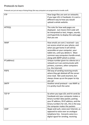 Computer Science or ICT worksheet on protocols | Teaching Resources