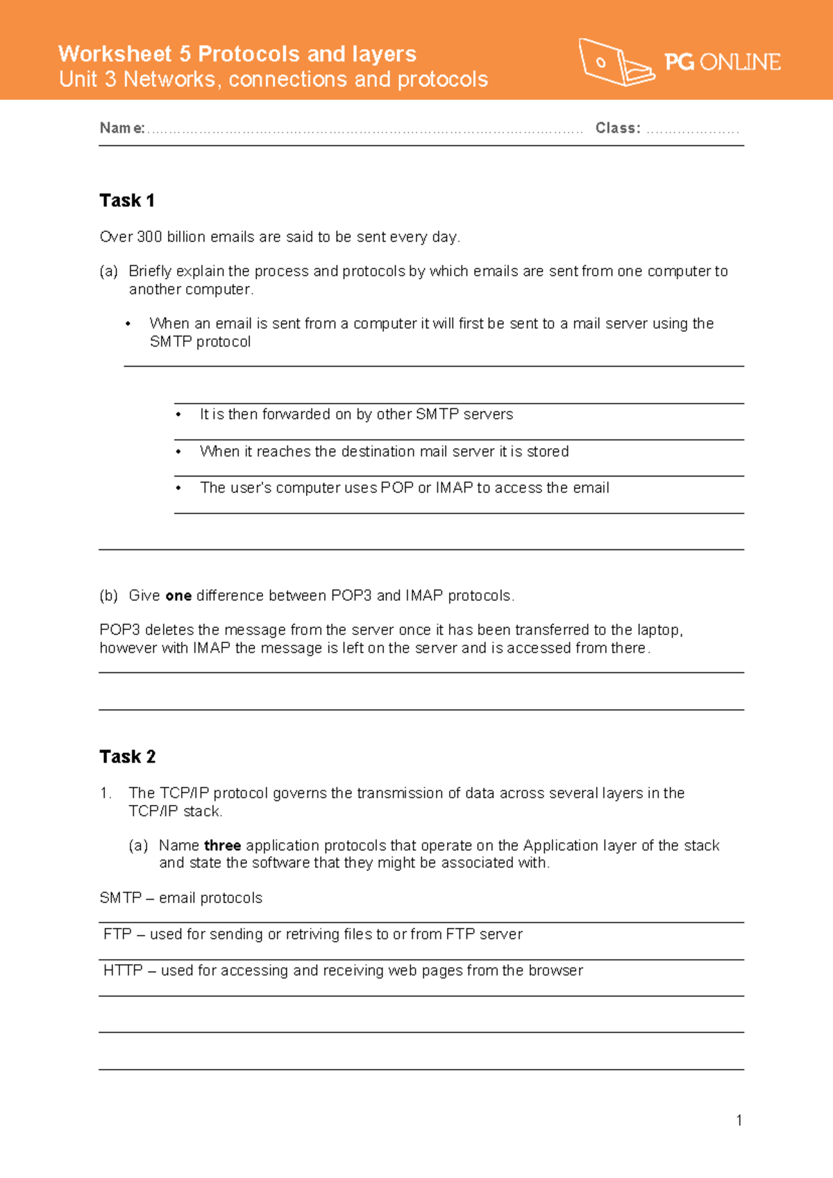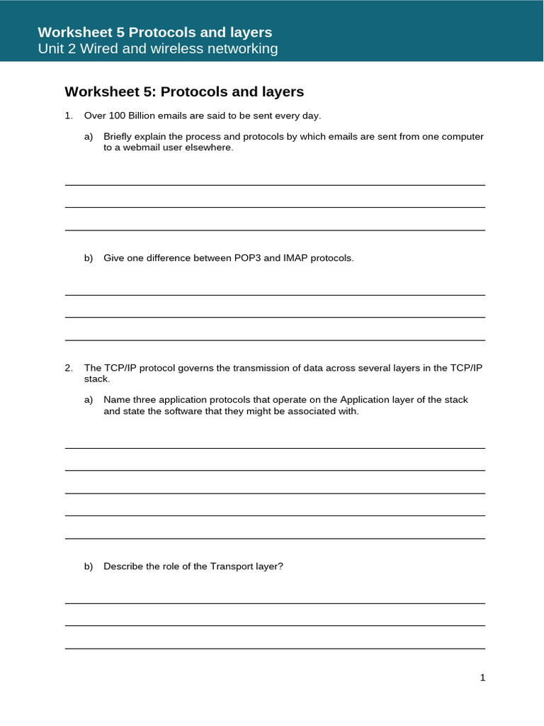 Unit 3 Networks: Worksheet 5 on Protocols and Layers - Studocu