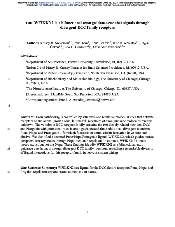 (PDF) WFIKKN2 is a bifunctional axon guidance cue that signals through ...
