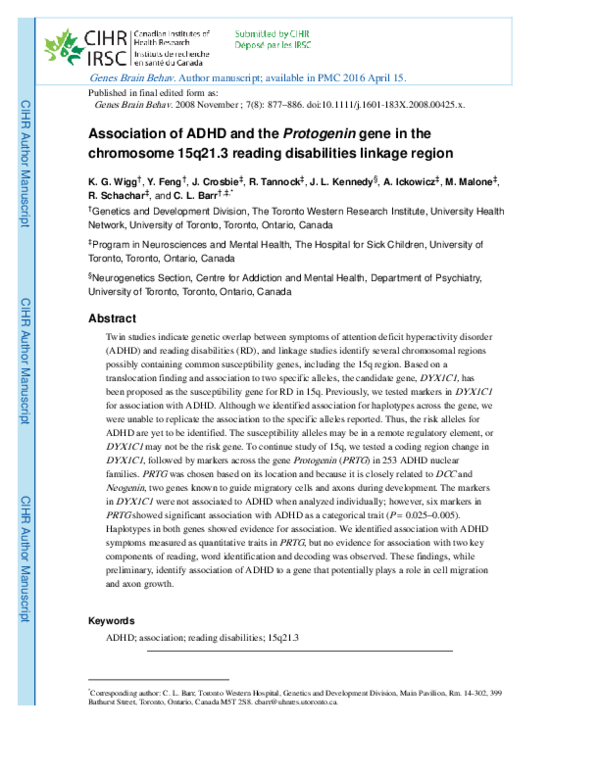 (PDF) Association of ADHD and the Protogenin gene in the chromosome ...