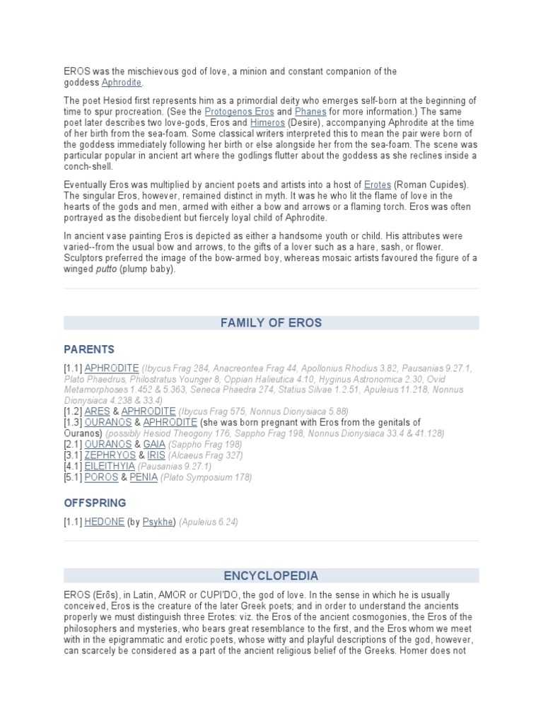 EROS was the Protogenos (primordial deity) of procreation who emerged ...