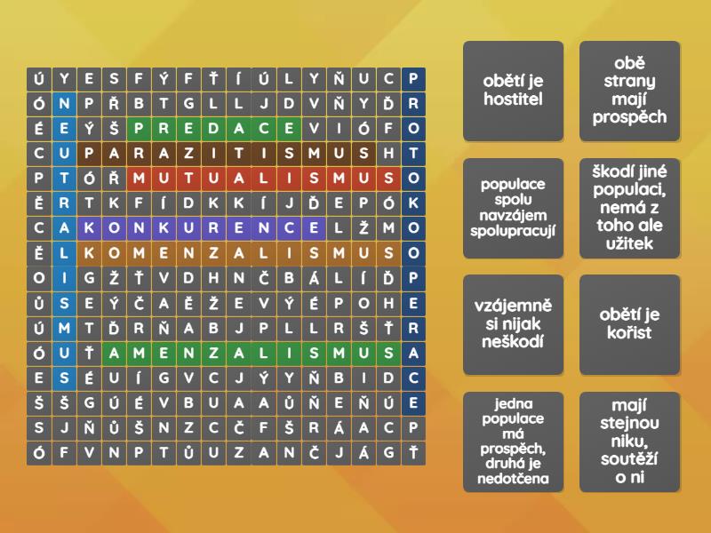 vztahy mezi populacemi - Wordsearch
