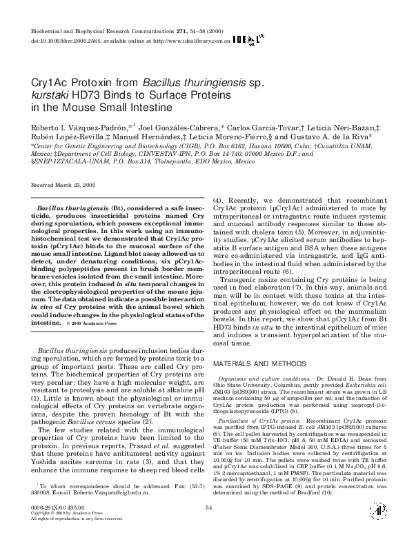 (PDF) Cry1Ac Protoxin from Bacillus thuringiensis sp. kurstaki HD73 ...