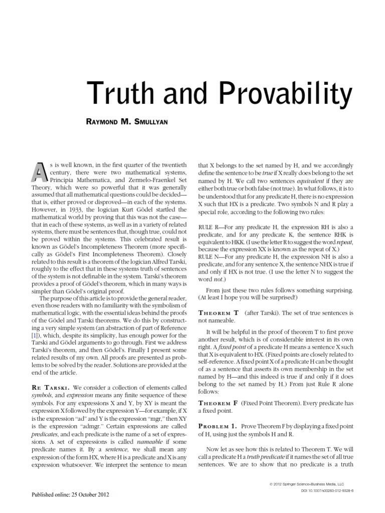 Truth and Provability | PDF | Mathematical Proof | Theorem