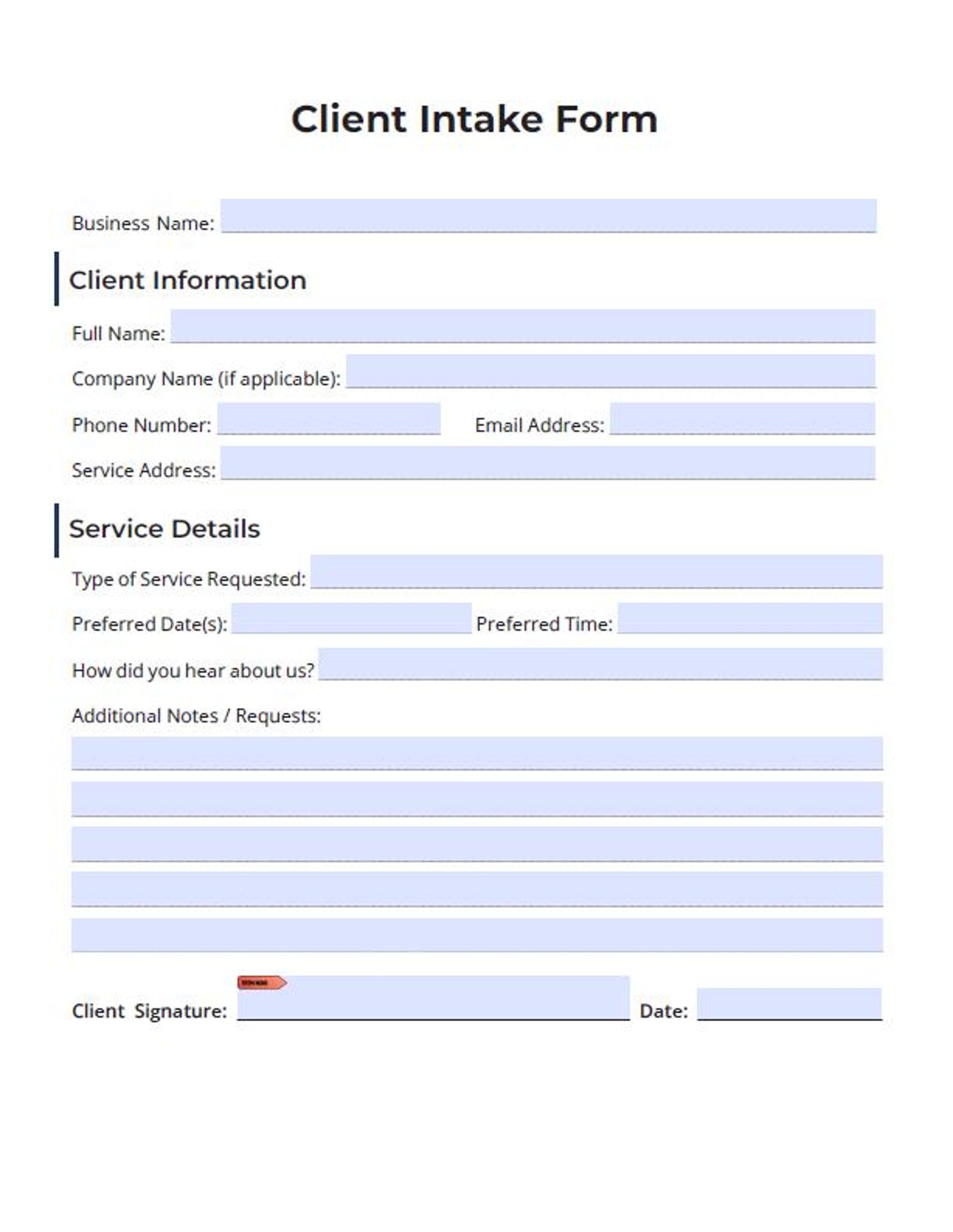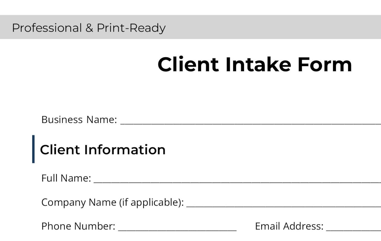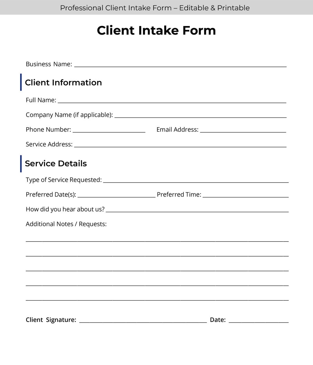 Editable Client Intake Template for Service Providers | Printable Small ...
